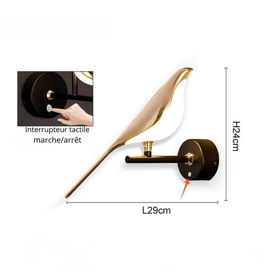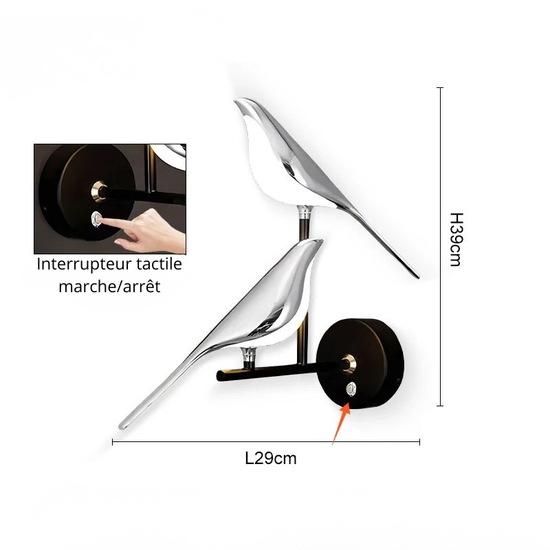 Quand la lumière prend son envol. L’applique murale oiseau insuffle une touche de poésie moderne à votre salon, mariant design artistique et lumière apaisante pour créer une atmosphère délicate et harmonieuse.