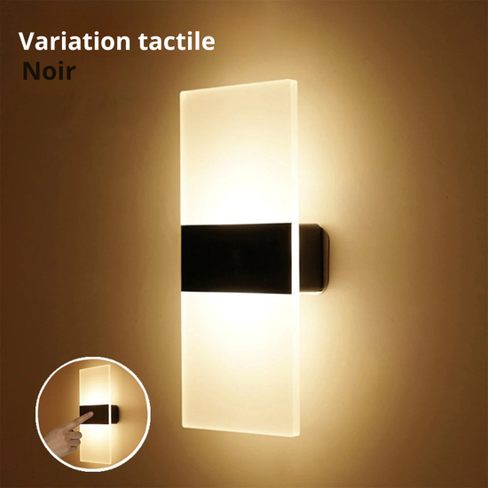 Applique murale LED en métal et acrylique, luminaire mural moderne avec interrupteur tactile pour chambre ou couloir intérieur.