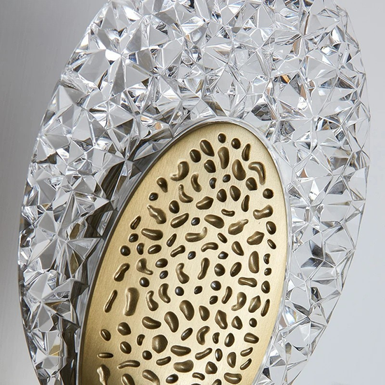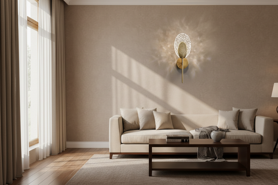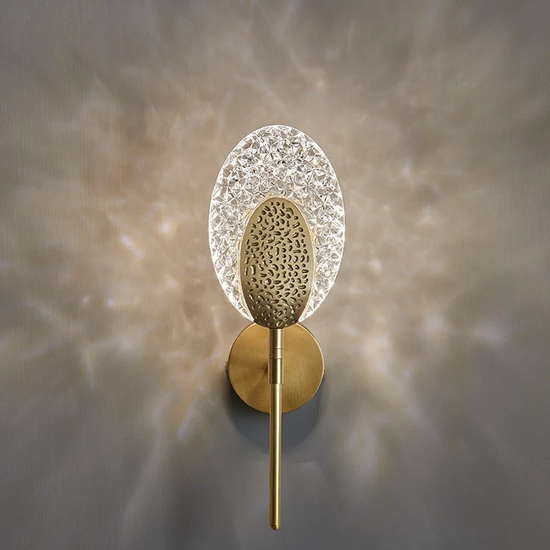 Pensée comme une véritable pièce décorative, cette applique murale en acrylique doré diffuse une lumière douce et rayonnante qui transforme l’atmosphère avec élégance. Son diffuseur en acrylique texturé capte la lumière et la projette sur le mur en un halo subtil, créant un jeu d’ombres délicat et enveloppant. Chaque allumage révèle une ambiance chaleureuse, intime et raffinée.