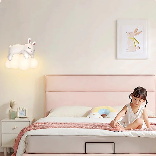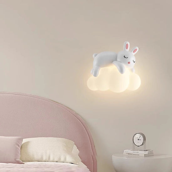 Applique murale LED en résine et acrylique blanche, luminaire décoratif mignon et apaisant pour chambre de bébé intérieure.