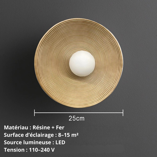 Applique murale nordique en résine texturée et métal doré, luminaire décoratif nordique pour salon ou chambre moderne.