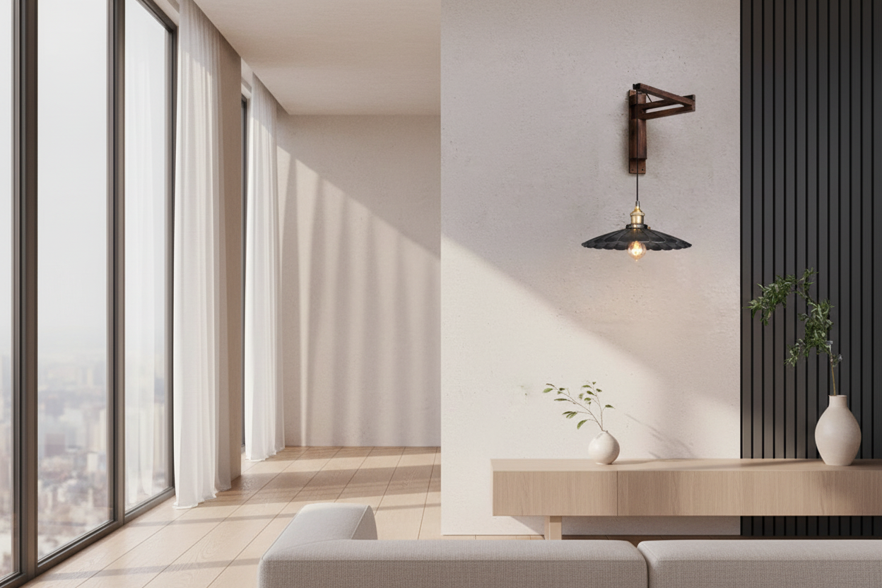 Accrochée dans une maison au style contemporain, bohème ou même industriel, elle devient un point d’ancrage visuel, une présence lumineuse qui réchauffe l’atmosphère et structure votre décoration. Chaque détail raconte une histoire, la finesse de son abat-jour, la noblesse du bois, la poésie de la lumière qui glisse le long de sa silhouette. Plus qu’un luminaire, c’est une pièce à l’âme unique, pensée pour sublimer votre espace avec douceur, style et éclat.