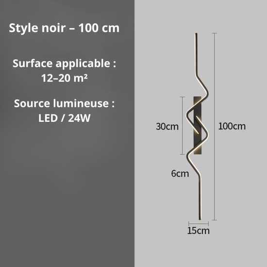 Applique murale LED en aluminium noir, luminaire design sculptural et moderne pour salon ou couloir intérieur contemporain.